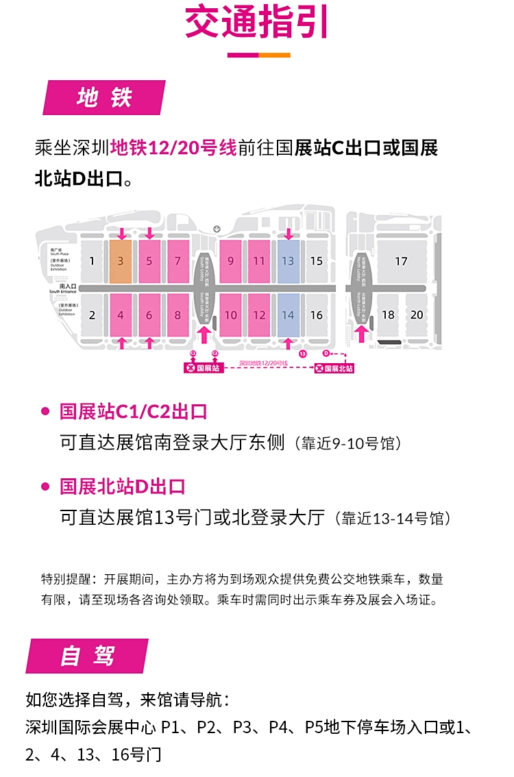 机场离展馆有8公里左右,从机场乘坐11号线乘坐一站后到机场北转20号线到国展站下从C1,C2口出到达展馆